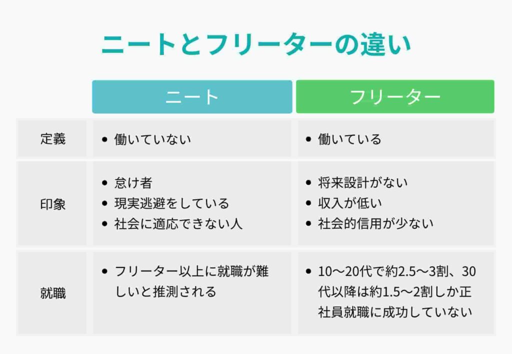 ニートとフリーターの主な違いは何ですか?