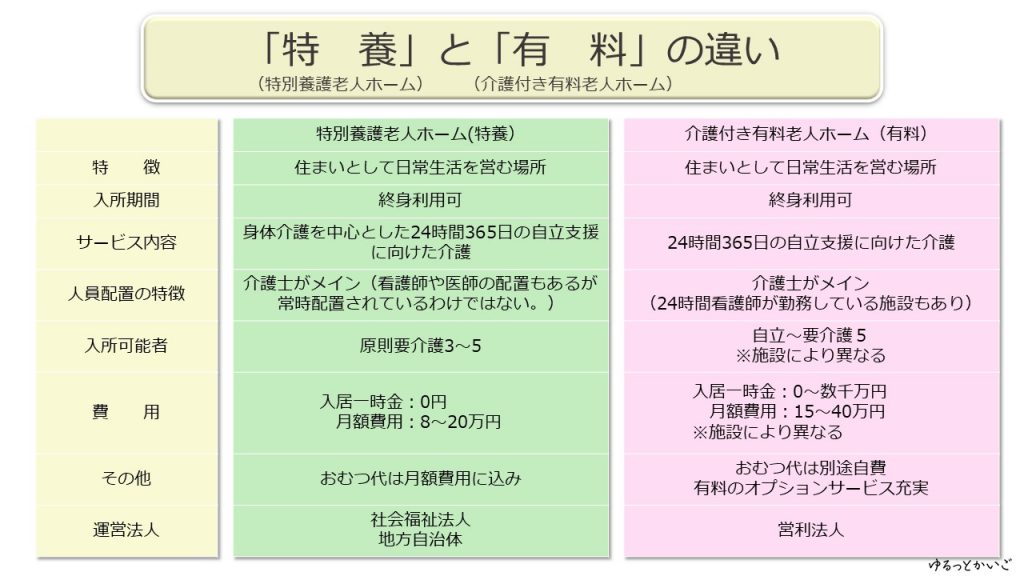 有料老人ホームと特養の違いは何ですか?