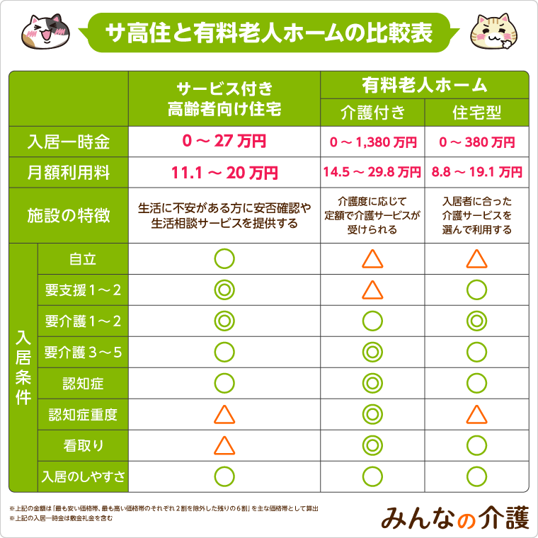 このように、両者の違いは明確であり、費用面でも有料老人ホームは比較的高額である一方、サ高住はよりコストパフォーマンスに優れた選択肢になることが多いです。どちらを選ぶべきかは、それぞれの健康状態や生活スタイル、経済的な条件に基づくため、個人のニーズに応じて慎重に検討することが求められます。