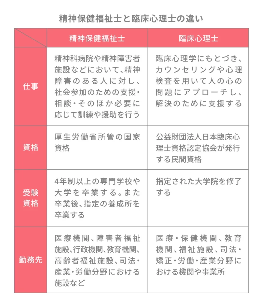 精神保健福祉士と臨床心理士の主な違いは何ですか?